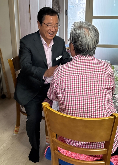 ▲ 이현재 하남시장이 취약계층 가정에 직접 찾아 격려하고 생활 불편 사항을 살피며 안부를 확인하고 있다. |