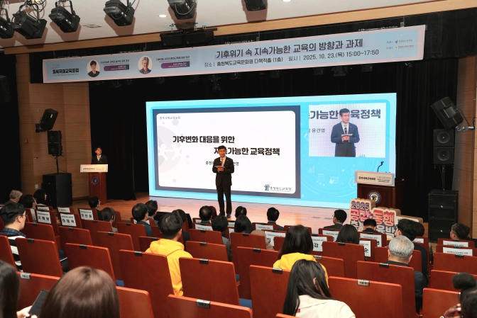 [뉴스다컴] 충청북도교육청은 23일, 교육문화원 다목적홀에서 기후위기 속 지속가능한 교육의 방향과 과제를 주제로 2025. 충북국제교육포럼을 개최했다.