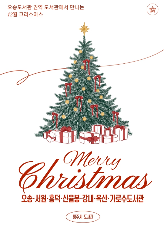 [뉴스다컴] 청주시 오송도서관 권역 7개관(오송·서원·흥덕·신율봉·강내·옥산·가로수도서관)은 크리스마스 시즌을 맞아 12월 한 달 동안 다채로운 문화행사를 진행한다.