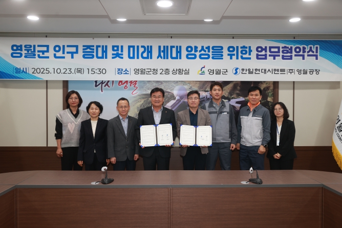 [뉴스다컴] 영월군은 23일 한일현대시멘트(주) 영월공장(공장장 허권회)과 인구 증대 및 미래 세대 양성을 위한 업무 협약을 체결했다고 밝혔다.