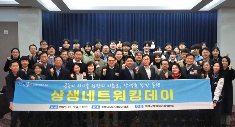 [뉴스다컴] 구미상생일자리협력센터(센터장 유경숙)는 12월 3일 호텔 금오산 사파이어홀에서 ‘25년 센터 지원사업 참여기업 및 이차전지 기업 협력 협의회 회원사 대표, 임직원 등 100명이 참석한 가운데‘상생네트워킹데이’를 개최했다.