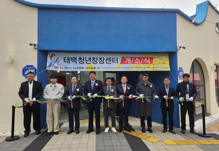 [뉴스다컴] 태백시는 지난 25일, 청년 창업 기반 조성과 신규 일자리 창출, 청년의 지역 정착을 지원하기 위해 조성된 청년창창센터(계산1길 15) 개소식을 개최했다고 밝혔다.