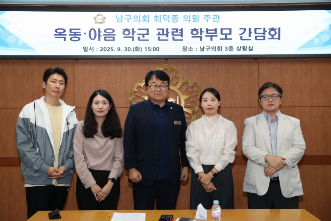 [뉴스다컴] 울산 남구의회 최덕종 의원(더불어민주당·신정4동·옥동)은 30일 3층 의회상황실에서 남구 옥동지역 중학교 배정 민원과 관련해 학부모 간담회를 개최했다.