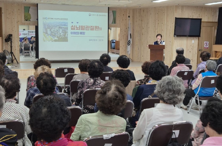 [뉴스다컴] 부산 서구가 지난 16일 서구 부민노인복지관에서 지역 주민 70여 명이 참석한 가운데‘고혈압, 당뇨병 등 심뇌혈관질환 및 노인천식 예방 관리 방법’을 주제로 건강 강좌를 개최했다.