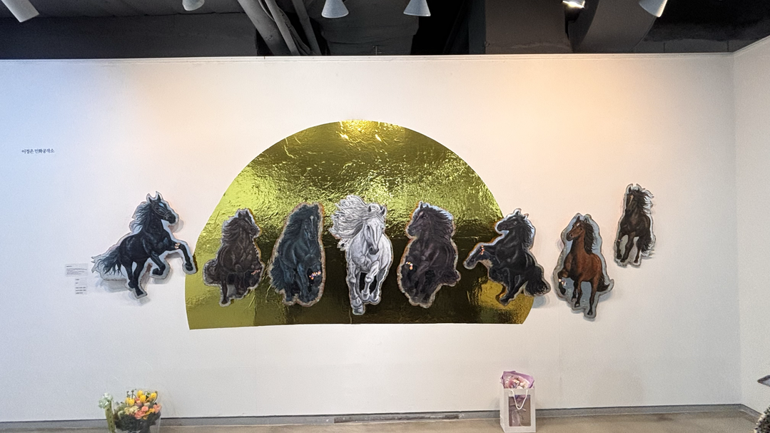 이러한 작업 세계는 서울 종로구 동덕아트갤러리에서 열리고 있는 2026년 새해맞이 특별 와이드 기획전 〈물렀거라 세화 나가신다〉에서도 다른 방식으로 이어진다. 김영애 작가는 이번 전시에서 여덟 명의 작가가 함께 참여한 말 세화 공동작품에 참여했다. 2026년 말의 해를 기념해 제작된 이 작품은, 각기 다른 필치로 그려진 여덟 마리의 말이 한 화면 안에서 조화를 이루며 앞으로 나아가는 기운을 담아낸다.