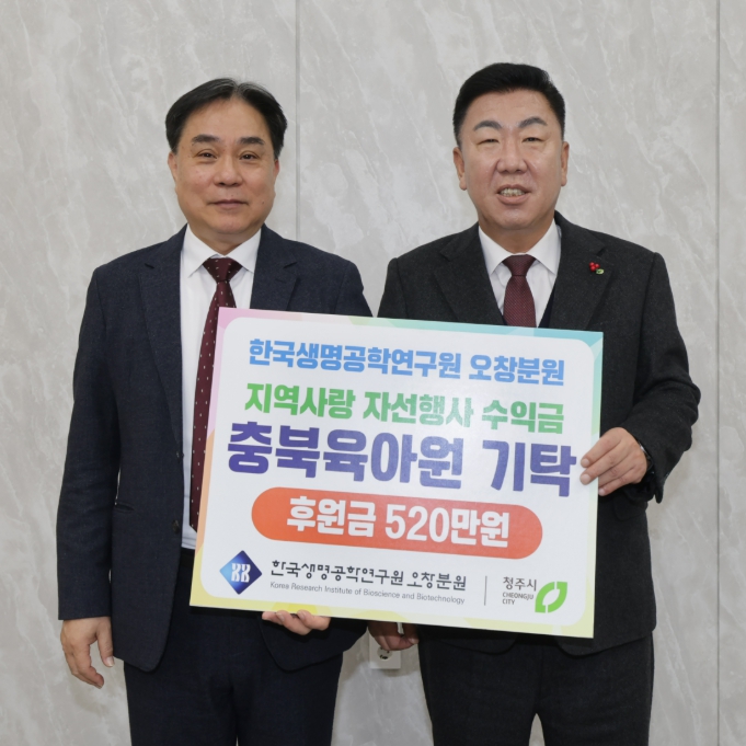 [뉴스다컴] 한국생명공학연구원 오창분원은 30일 청주지역 아동양육시설 보호아동을 위해 사용해 달라며 청주시에 자선행사 수익금 520만원을 기탁했다.