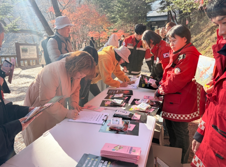 행사장을 찾은 방문객들에게 산불 예방 홍보물을 배부하고 직접 소통하며, 산불 발생의 위험성과 생활 속 예방 실천 방법을 안내하는 등 산불 예방 메시지를 효과적으로 전달하여 경각심을 높였다.