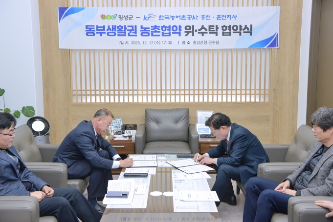 [뉴스다컴] 횡성군은 17일 한국농어촌공사 홍천·춘천지사와 “동부생활권 농촌협약”에 대한 업무 위·수탁 협약을 체결했다고 밝혔다.