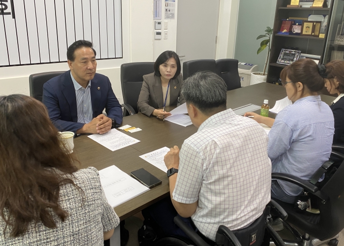 [뉴스다컴] 경기도의회 보건복지위원회 황세주 부위원장(더민주, 비례)와 김용성 의원(더민주, 광명4)는 3일 경기도의회에서 한국척수장애인협회 경기도협회(협회장 김창호)와 정담회를 열고, 중도장애인 전환재활을 위한 제도적 지원방안을 논의했다.