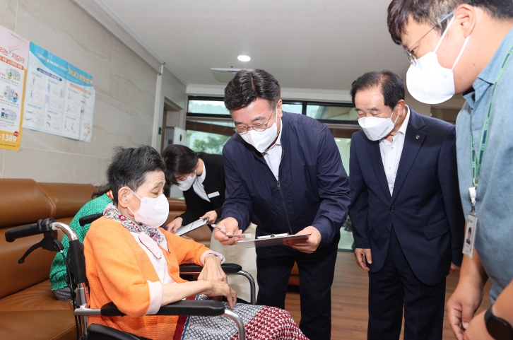 윤 장관은 먼저 문백면 소재 본정노인요양원을 찾았다.