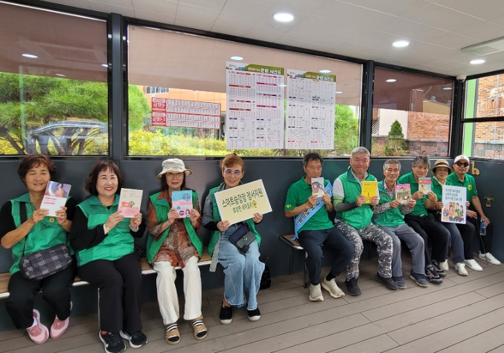 [뉴스다컴] 효령면 새마을회가 버스를 기다리는 주민들을 위해 스마트승강장 내 책꽂이에 도서를 기증하며 따뜻한 정서지원 활동을 이어가고 있다.