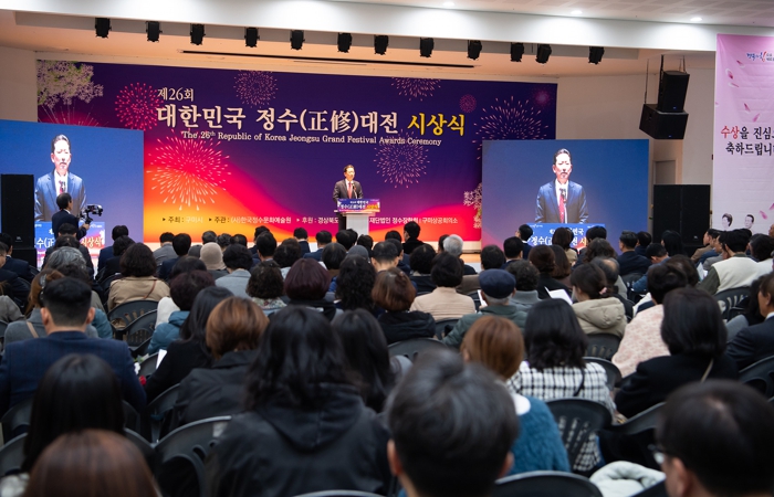 올해 26회째를 맞은 대한민국 정수대전은 구미시가 주최하고 (사)한국정수문화예술원이 주관하는 국내 대표 시각예술분야 공모전이다. 박정희 대통령과 육영수 여사의 문화예술 정신을 계승해 미술·서예·문인화·사진 등 다양한 순수예술 장르의 창작 역량을 결집하는 전국 규모의 대전으로 자리매김했다.