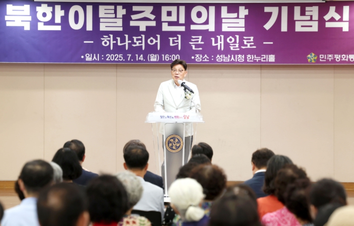 [뉴스다컴] 성남시의회는 14일 성남시청 3층 한누리실에서 열린 ‘북한이탈주민의 날 기념식’에 참석해 연대와 포용의 가치를 공유했다. 이번 행사는 성남시에 거주하는 북한이탈주민들을 격려하고, 지역사회 내 안정적 정착을 응원하기 위해 마련됐다.