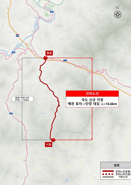 [뉴스다컴] 충북도는 지방도 927호선 ‘예천 효자~단양 대강’ 노선이 국토교통부 도로정책심의(’25. 7. 8.)를 거쳐 국도로 노선이 승격됐다고 밝혔다.