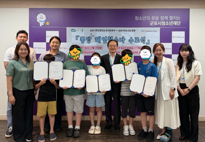 [뉴스다컴] 군포시청소년재단, 군포시학교밖청소년지원센터는 2025년 7월 14일, 군포시청소년수련관과 함께 진행한 생존수영 프로그램의 수료식을 개최했다.