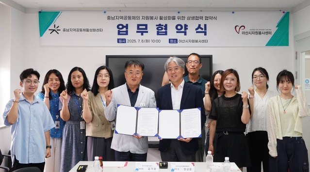 아산시자원봉사센터에서 진행된 이번 협약의 주요 내용은 ▲충남지역공동체의 자원봉사 활성화와 연계 사업 추진 ▲충남소통협력공간의 활용 및 지역소멸 대응 ▲공익활동과 시민사회 연계 강화를 위한 지역 자원봉사 생태계 구축 ▲지역 기반 로컬브랜딩 및 공동체 창조생태계 구축 등이다.