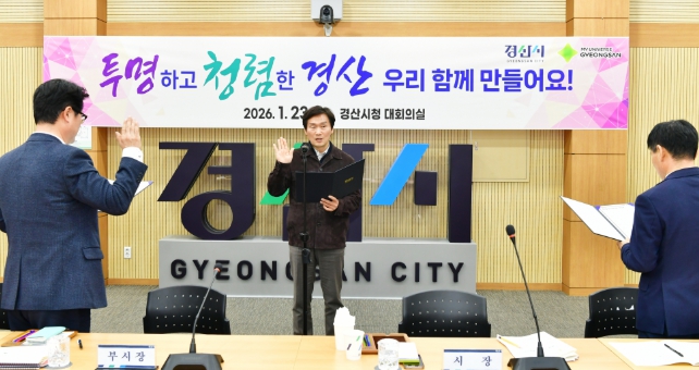 [뉴스다컴] 경산시는 23일 경산시청 대회의실에서 2026년 간부 공무원 반부패·청렴실천 결의대회를 개최했다.