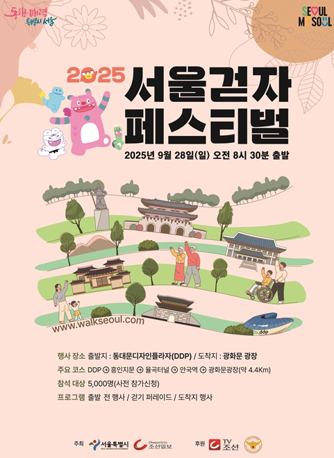 서울시는 오는 9월 28일 ‘2025 서울 걷자 페스티벌’을 개최한다고 밝혔다. 올해로 12회를 맞는 이번 행사는 시민 5천여 명이 함께하는 국내 최대 규모의 걷기 행사로, 동대문디자인플라자(DDP)에서 광화문광장까지 도심 도로가 차량 대신 시민에게 개방된다.