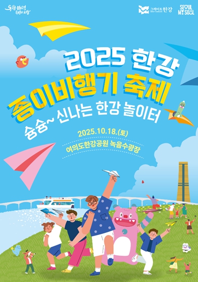 또한 「2025 한강 종이비행기 축제」는 10월18일 여의도한강공원에서 ‘슝슝 신나는 한강 놀이터’를 주제로 열린다. 종이비행기 날리기 세계대회 우승자 등 전문가의 시연과 종이비행기를 마음껏 접어볼 수 있는 공작소 등 체험 프로그램과 축하 공연 등이 풍성하게 펼쳐질 예정이다.
