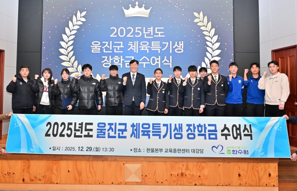 [뉴스다컴] 한국수력원자력(주) 한울원자력본부는 울진군 체육특기생 57명을 선정하여 총 2천8백5십만 원의 장학금 수여식을 개최했으며, 이는 2017년부터 추진 중인 지역 체육인재 육성 사업의 일환이다. 이들은 전국사격대회, 전국고등축구 스플릿 리그 등 각종 대회에서 우수한 성과를 거두었다.