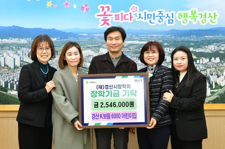 [뉴스다컴] (재)경산시장학회(이사장 조현일)는 18일 경산시 K보듬 6000 4개소 어린이집에서 지역인재 육성을 위한 장학금 2,546,000원을 기탁했다고 밝혔다.