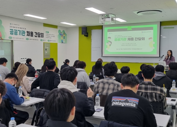 [뉴스다컴] 강원혁신도시발전지원센터는 11월 20일 강원혁신지식산업센터 2층 LAB실에서 원주권 고등학생·대학생 50여 명을 대상으로‘2025 공공기관 채용간담회’를 개최했다.