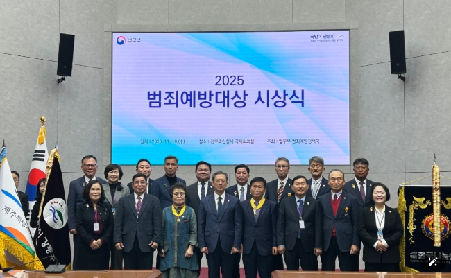 [뉴스다컴] 제주특별자치도가 도민 참여형 범죄예방 정책의 우수성을 인정받아 법무부 주관 ‘2025 범죄예방대상’ 국무총리 표창을 19일 받았다.