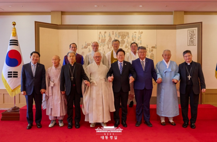 [뉴스다컴] 이재명 대통령은 9일 대통령실에 7대 종교지도자 11명을 초청해 '사회통합의 길, 종교와 함께' 행사를 열었다고 강유정 대변인이 브리핑을 통해 밝혔다.