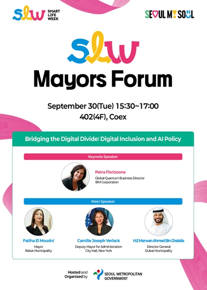 SLW 2025의 하이라이트 중 하나인 메이어스 포럼은 ‘디지털 격차 해소를 위한 디지털 포용과 AI 정책(Bridging the Digital Divide: Digital Inclusion and AI Policy)’을 주제로 열린다.