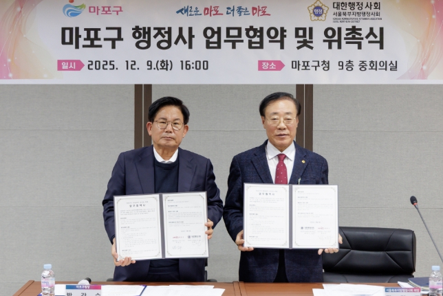 이날 마포구와 서울북부지방행정사회는 무료 행정상담과 상담실 운영 등에 관한 업무 협약을 체결했다.