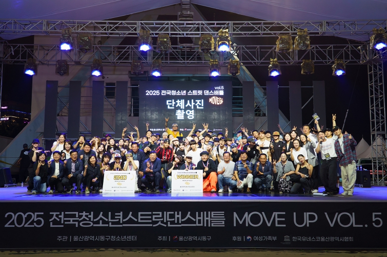 [뉴스다컴] 울산 동구는 동구청소년센터(센터장 이미영) 주관으로 8월 16일 오후 7시 일산상설무대에서 제5회 전국청소년 스트릿 댄스배틀 ‘Move Up!’ vol.5(이하 “Move Up!”)를 성황리에 개최했다.