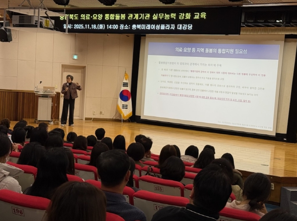 충북도는 11월 18일(화) 충북미래여성플라자에서 시군 통합돌봄 관계기관 담당자 200여 명을 대상으로 ‘의료·요양 통합돌봄 관계기관 실무능력 강화 교육’을 개최했다.