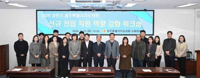 [뉴스다컴] 제주특별자치도의회 의회운영위원회는 지난 1월 27일, 도의회 의사당 소회의실에서 2026년 상반기 정기인사로 전입한 직원 및 실무 역량 배양이 필요한 직원들을 대상으로 ‘역량 강화 워크숍’을 개최했다.