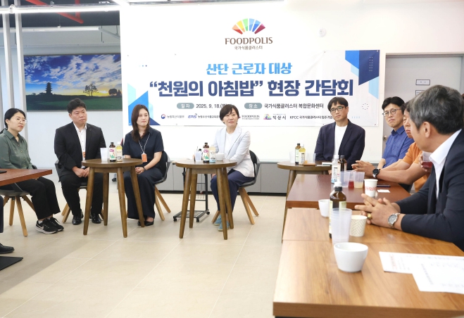 이어 송 장관은 전북 익산시에 소재한 국가식품클러스터 산업단지를 방문하여 산단 근로자들과 소통하는 시간을 가졌다. 이 자리에서 송 장관은 “대한민국 산업의 근간인 산단 근로자들의 건강한 식생활을 지원하기 위해 올해 10월부터 신규로 ‘천원의 아침밥’ 사업을 시행할 수 있게 되어 매우 뜻깊게 생각한다”라고 말했다.