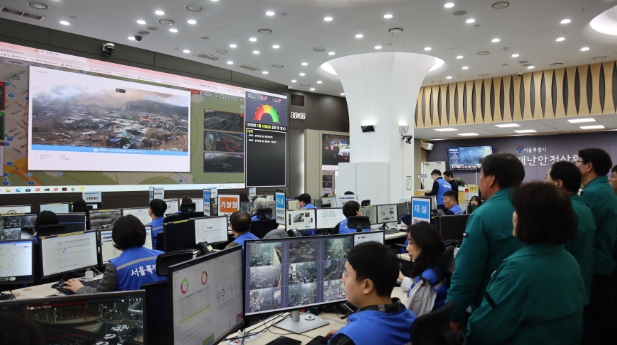 [뉴스다컴] 16일 오전 5시경 강남구 개포동 구룡마을 4지구에서 원인 미상의 화재가 발생한 가운데 화재 대응 단계가 1단계에서 2단계로 격상되면서 서울특별시의회 도시안전건설위원회는 이날 오전 11시경 서울시 재난안전상황실을 긴급 방문하여 구룡마을 화재 진압 상황을 재난안전상황실 전면에 비치된 대형모니터를 통해 살핀 후 총력 대응을 주문했다.