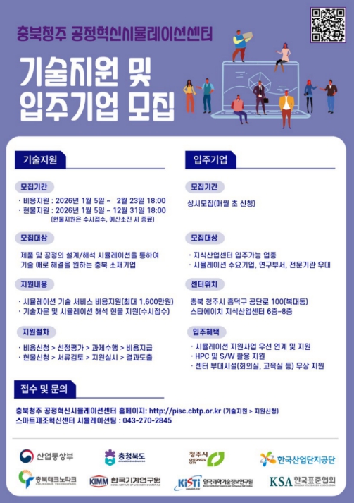 | ▲ 충북청주 공정혁신시뮬레이션센터 기술지원 및 입주기업 모집 |