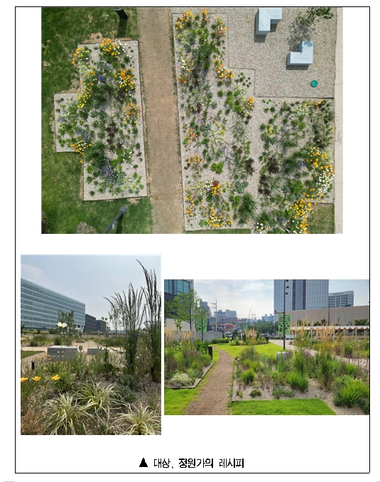 대상을 수상한 ‘정원가의 레시피’는 회복력이 강한 식물을 중심으로 자연의 다양성을 활용해 변화하는 기후에도 안정적으로 대응할 수 있는 정원으로 조성됐다. 특히 폭염과 폭우 등 이상기후에도 사계절 유지가 가능한 식재 조합을 적용해, 봄부터 겨울까지 건강하게 생육할 수 있는 점이 높은 평가를 받았다. 또한 유지관리 부담을 최소화하면서도 장기적으로 안정적인 경관을 유지할 수 있는 설계로 우수성이 인정됐다.