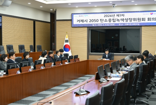 [뉴스다컴] 거제시는 지난 4일, 시청 중회의실에서 ‘2026년 제1차 거제시 2050 탄소중립녹색성장위원회’회의를 개최하고 2기 위원회 출범을 알렸다.