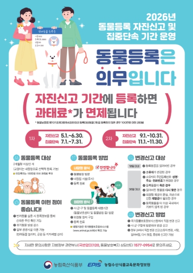 | ▲ 2026년 동물등록 자진신고 및 집중단속기간 운영(포스터) |