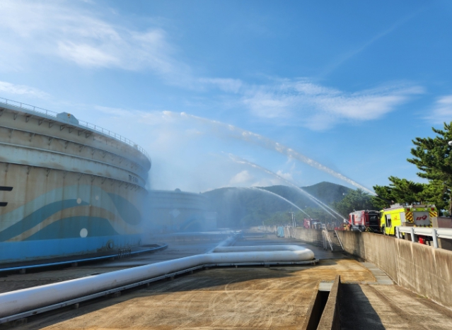 [뉴스다컴] 경상남도 소방본부(본부장 이동원)는 28일 거제시 일운면 소재 한국석유공사 석유비축기지에서 지진 발생에 따른 원유 누출과 화재 대응을 위한 통합 대응훈련을 성공적으로 실시했다고 밝혔다.