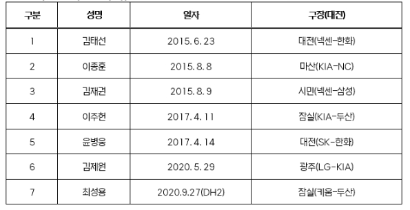 ▲ 역대 2,500경기 출장 기록위원 명단 |