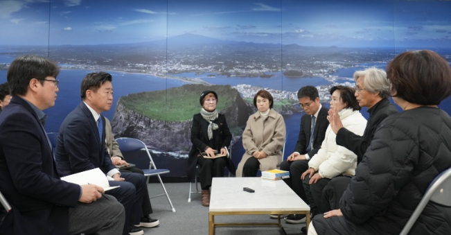 [뉴스다컴] 제주특별자치도는 제주평화인권헌장 제정과 관련해 2일(화) 도청 소통회의실에서 제주도민연대(대표 이향) 등 단체와 면담을 가졌다.