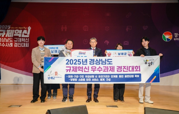 [뉴스다컴] 경상남도는 19일 도청 본관 4층 대회의실에서 ‘2025 경상남도 규제혁신 우수사례 경진대회’를 개최했다. 이번 경진대회는 규제혁신을 통해 도민이 체감할 수 있는 변화를 이끌어낸 우수사례를 공유하고, 향후 추진 방향을 모색하기 위해 마련됐다.