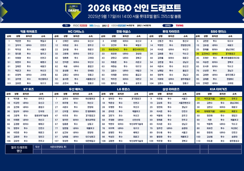 [뉴스다컴] 2026 KBO 신인 드래프트 결과