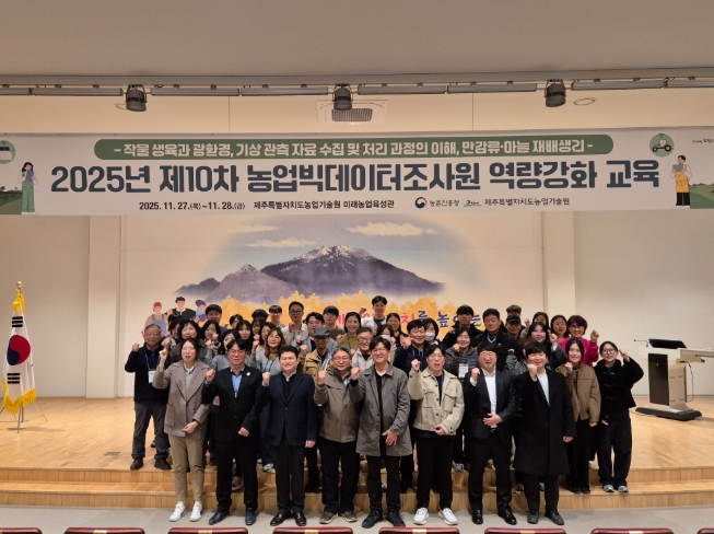 [뉴스다컴] 제주특별자치도 농업기술원(원장 고상환)이 27일부터 28일까지 미래농업육성관 대강당에서 ‘2025년 농업빅데이터조사원 역량강화 교육’을 연다.