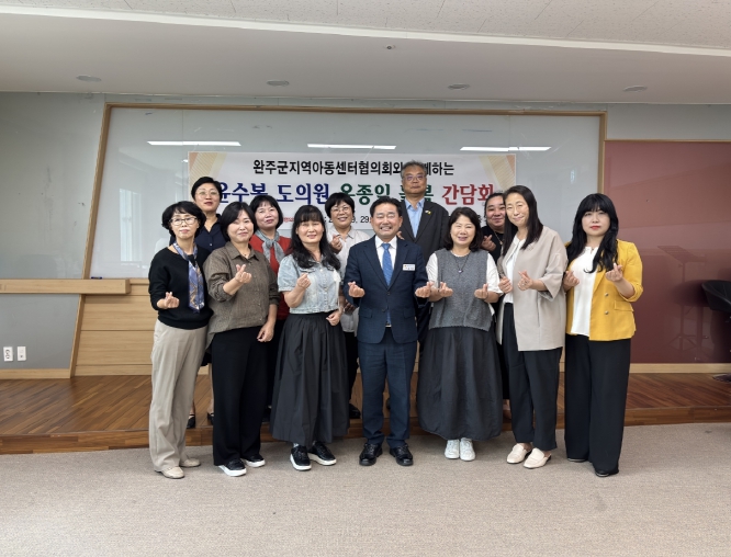 [뉴스다컴] 윤수봉 전북특별자치도의회 의회운영위원장(완주1)은 지난 29일 완주가족문화회관 2층에서 완주군지역아동센터협의회와 간담회를 개최했다”고 밝혔다.