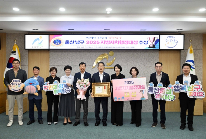 [뉴스다컴] 울산 남구가 지난 25일 국회도서관 대강당에서 ‘2025년 지방자치 행정대상’을 수상했다.