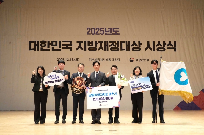 [뉴스다컴] 춘천시가 16일 행정안전부 주관 2025 대한민국 지방재정대상에서 민생회복소비쿠폰 집행 분야 전국 최상위 성과를 인정받아 ‘가’등급에 이름을 올렸다.