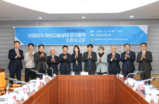 [뉴스다컴] 전북특별자치도의회 의원 연구단체 ‘기업하기 좋은 전북’(대표위원 서난이)은 15일 도의회 세미나실에서 ‘전북 산업단지 청년 고용실태 연구’ 최종보고회를 열고, 지역 산업단지의 청년 고용 여건과 구조적 한계를 진단하고 정책 대안을 제시했다.