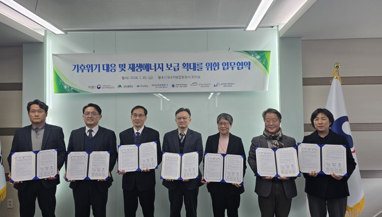 [뉴스다컴] 경상북도는 대구지방환경청이 주관하고 대구광역시, 한국에너지공단 대경본부, 한국전력공사 대경건설지사 등 지역 유관기관이 참여하는‘재생에너지 보급 확대를 위한 업무협약’을 2026년 1월 30일 14시, 대구지방환경청 회의실에서 체결했다고 밝혔다.